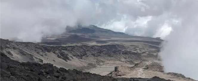 After breakfast, you will leave Shira Camp and start your way to the key point of the route: Lava Tower (4,600 m /15,088 f). This section of the route has a lot of ascents and descents that end in a camp at over 4,600 m /15,088 f. Portions of the trek may be difficult, and it is common to experience some discomfort, but in order to successfully acclimate to the altitude you have to spend at least 1–2 hours here. For this reason, our groups enjoy lunch at the top of Lava Tower.