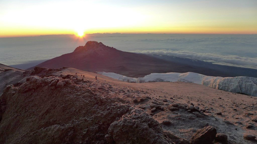 Then you start a more difficult hike to Karanga Camp, which features numerous ascents and descents during the route, but don’t worry: our guides are experts at choosing an optimal pace for the group. After reaching the camp you will be offered warm lunch. After a couple of hours you will have to ascend to Barafu Camp where you will be served a hot dinner. It is better to spend the remainder of the day resting and sleeping before the night summit.